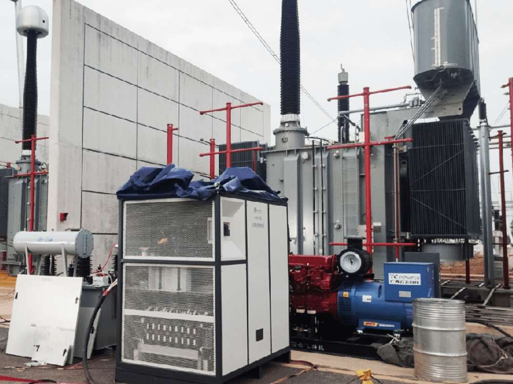 - 2015年10月,江苏电力科学研究院定制一车一箱主变感应耐压及局部放电试验设备在1000kV泰州站试验